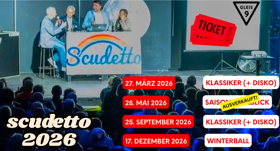 Gleis 9 (ehemals RIFF) im Bermuda-Dreieck; Einlass: 18.30h, Beginn: 19.30h / VVK / 20 Jahre SCUDETTO im Gleis 9 (RIFF) – unzählige besondere Momente und wie immer tolle Gäste!